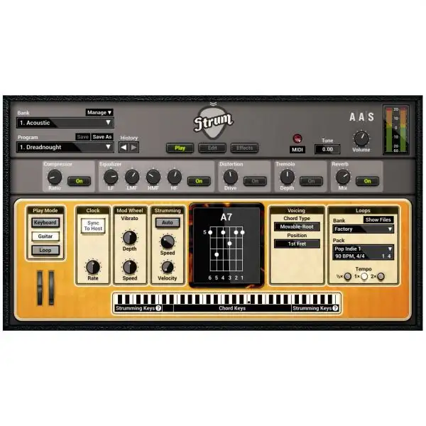 Applied Acoustics Strum GS-2 is a plug-in for the production of guitar tracks. With a huge collection of acoustic and electric guitars, automatic chord recognition, sophisticated chord voicing, integrated strumming and picking action, MIDI riff library, amp and effects, playing guitar on a keyboard has never been so easy.