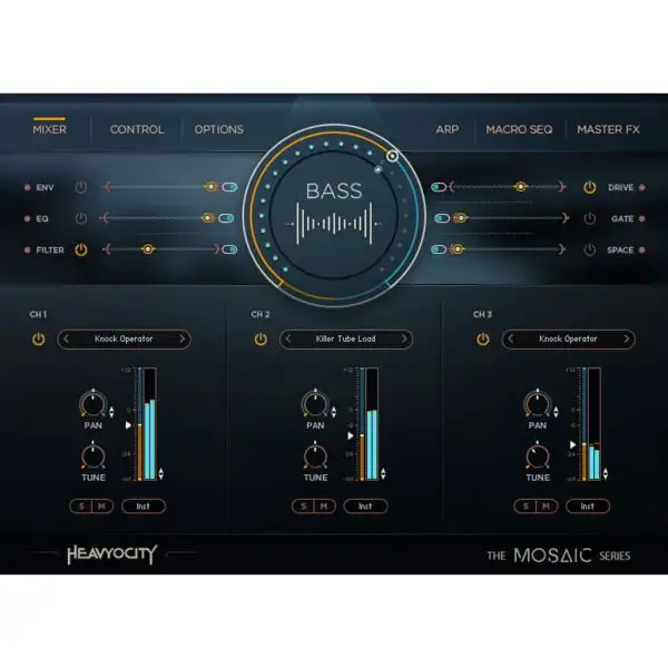 Heavyocity Mosaic Bass offers synth bass, organic, attacks, and noise layers to create dynamic, low-end textures. Bass virtual instrument perfect for cinematic productions.