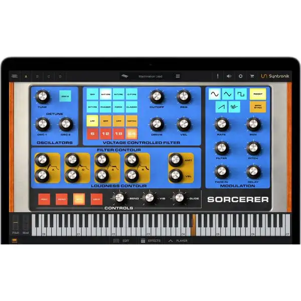The IK Multimedia Sorcerer offers the distinctive timbres of the legendary Moog source, two fat analog oscillators through the legendary Moog 24 dB per octave transistor ladder filter. In many ways, the Source was a programmable Minimoog capable of generating massive basses and superior leads.