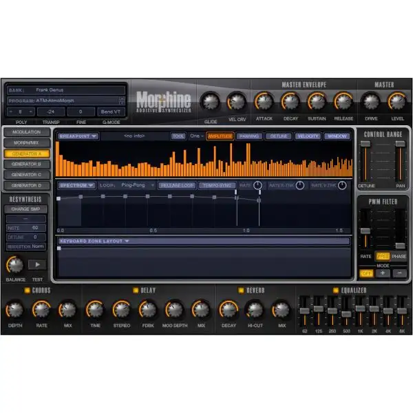 Be inspired. Resynthesis allows you to capture a complete spectrum from any audio sample, for accurate emulation of real instruments, or as a starting point for something completely new, using the in-built editing tools. Unlike the resynthesis of other additive synthesizers, Morphine provides total control so the resynthesized sounds are as close to the original sample as possible.
