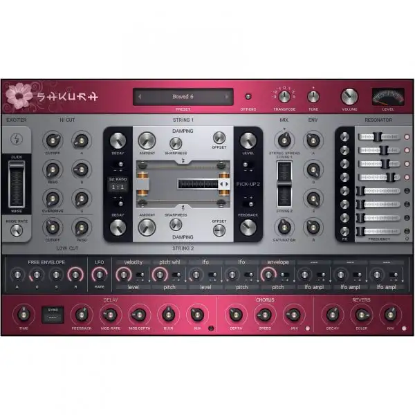 - Vibration – Sakura’s dual string model then gives the operator control over a wide range of parameters such as damping, tension, positioning and string properties