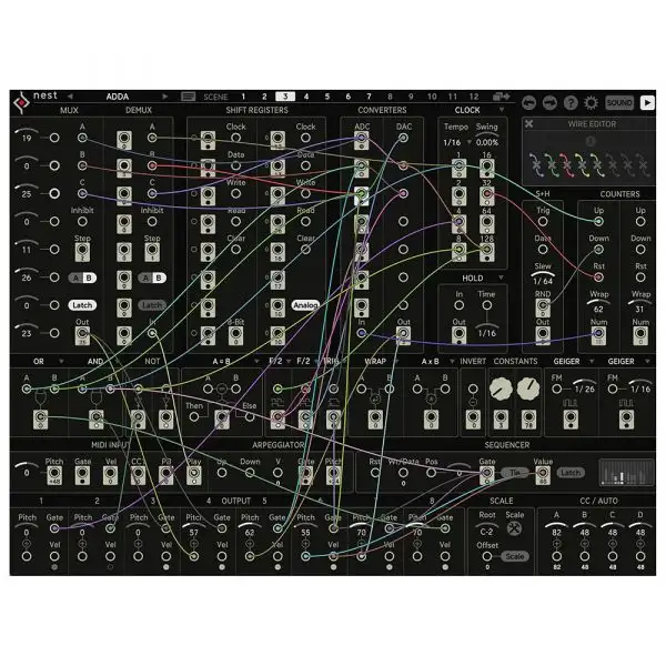 Sugar Bytes Nest is a modular system which gravitates around the creation of MIDI. The basic ingredients are: 20 modules inspired by classic integrated circuits and today’s computer features, a clever voice to synth assignment, 12 patch scenes and a quad VST/Synth/MIDI Interface.
