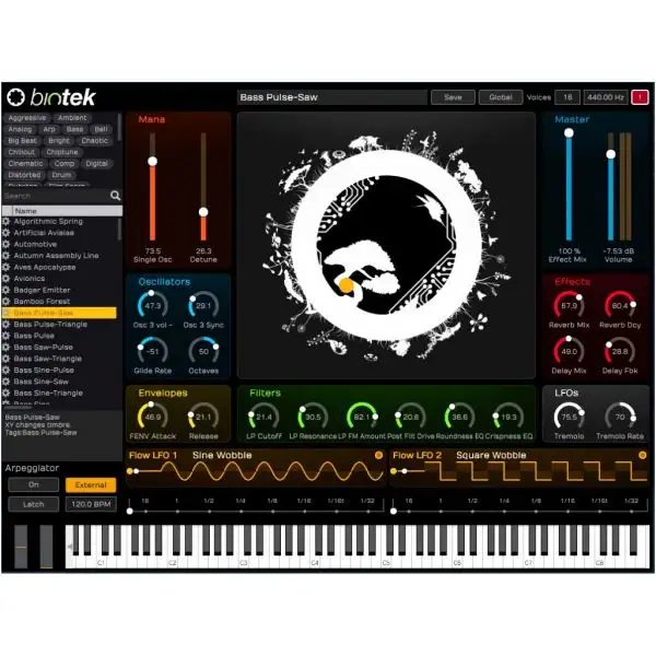 The latest version of the BioTek Organic Synthesizer features vast arrays of controls allowing you to tweak every parameter of each sound as desired. However, the large XY controller at the center of the main GUI or βWildβ layer gives the synth its most unique aspect β the ability to easily blend various patches into new sounds and morph them in real time. Itβs extremely fun, creative and inspirational to use.